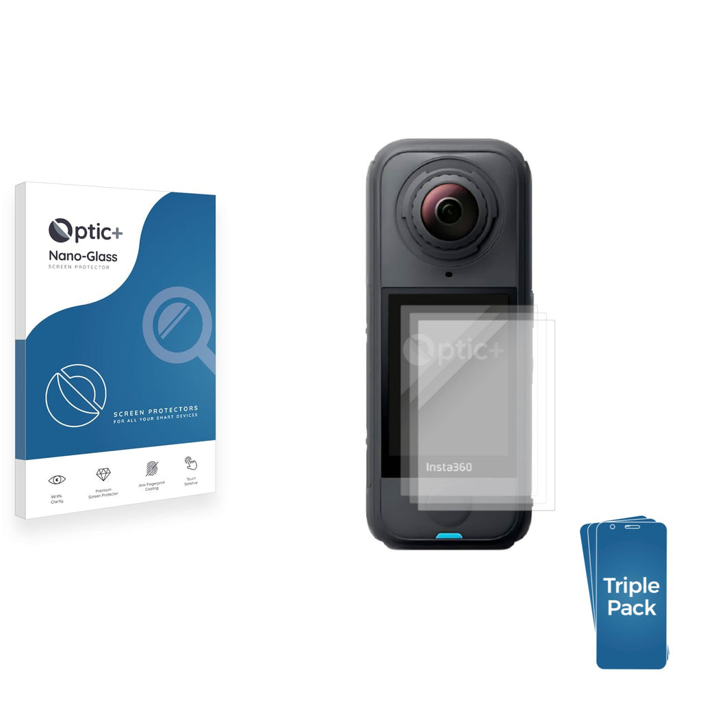 • Three Pack Optic+ Nano-Glass Screen Protectors for Insta360 X4 Air
