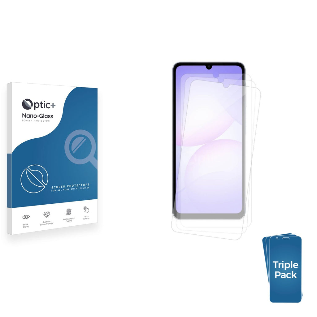• Three Pack Optic+ Nano-Glass Screen Protectors for Samsung Galaxy A07