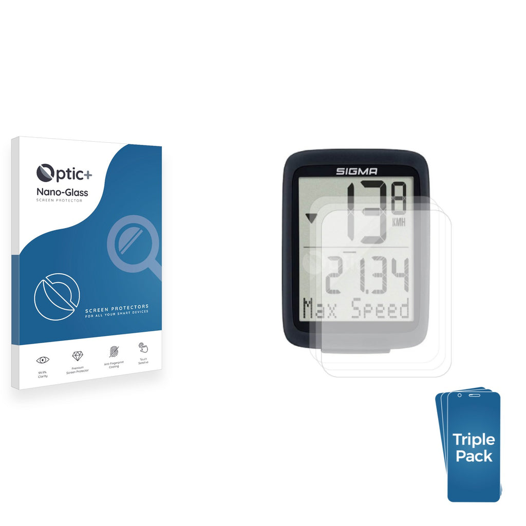 • Three Pack Optic+ Nano-Glass Screen Protectors for Sigma BC 10.0 WR
